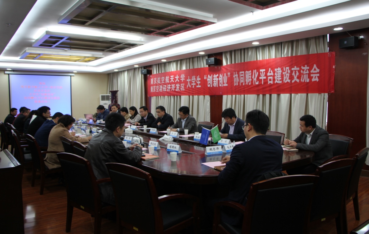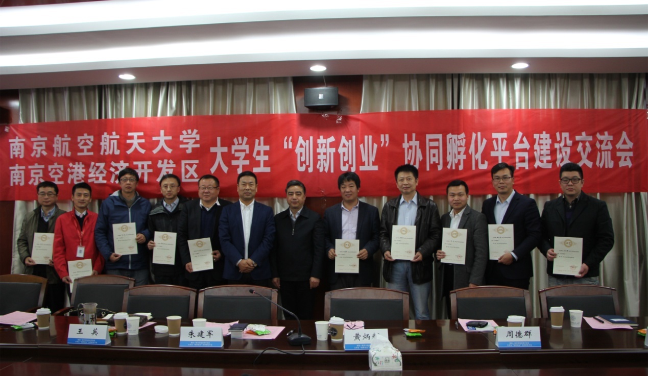 2017年4月11日,为推进产教深度融合、校企深度协同育人,拓展大学生“创新创业”实习实践基地建设,促进人才培养质量提升,南航—南京空港经济开发区大学生“创新创业”协同孵化平台建设交流会在江宁校区经管楼成功举行。江宁区政府副区长米永强、南京空港经济开发区管委会常务副主任俞清等六位江宁区、南京空港经济开发区的领导,南京航空航天大学校长助理黄炳辉、经济与管理学院院长周德群等十多位学校领导和老师,南京空港经济开发区的十一家企业老总参加了此次交流会,教务处副处长朱建军主持了此次交流会。