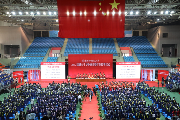 4月12日下午, 我校2017届研究生毕业典礼暨学位授予仪式在将军路校区体育馆举行。全体校领导、校长助理,校学位评定委员会委员,各学院院长、党委书记及部分职能部门负责人,导师代表、家长代表出席典礼,与2017届全体研究生共同分享这一难忘而美好的时刻。副校长、研究生院院长施大宁主持典礼。