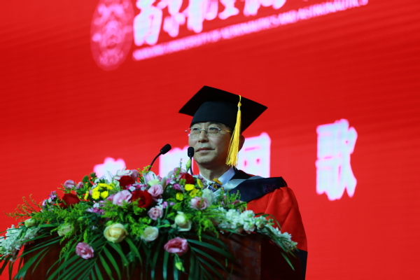 2017届共有毕业生2042名,本届典礼首次实现全体毕业生参加,十五个学院毕业生共同参与典礼,共同见证彼此学业有成的神圣时刻。典礼上,郑永安宣读《2017届优秀毕业研究生表彰决定》和《关于表彰2017年校优秀硕士学位论文的决定》,并对毕业生同学们学业有成表示祝贺。聂宏深情寄语毕业生。致辞中,他勉励同学们要不忘初心,坚守梦想;不拘一格,勇于创新;不辱使命,甘于奉献。同学们用一阵阵热烈的掌声回应着师长们的谆谆教诲和殷切寄语。周鹏教授作为研究生导师代表发言。
