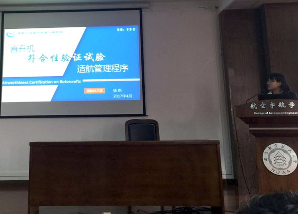 4月8日,应我校直升机旋翼动力学国家级重点实验室徐锦法教授邀请,中国直升机设计研究所高级工程师徐新访问我校,并为我校师生做题为“直升机符合性验证试验适航管理”的学术报告。报告介绍了中国直升机设计研究所民用直升机适航取证的进展,对我校开展直升机适航技术科研工作具有借鉴作用。直升机系副主任朱清华副教授主持报告会。