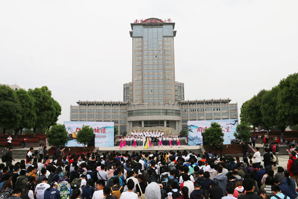 本届读书节以南京航空航天大学、南京师范大学、河海大学、南京医科大学四校联合举办的百人诵读活动作为开幕式。我校副校长施大宁出席开幕式并致辞,四校相关领导,我校教务处、图书馆、宣传部、团委、校工会、艺指委、学生处相关负责人以及广大师生参加了开幕式。百人诵读活动分为“经典之歌”、“春之歌”、“书之歌”以及合诵四个篇章,加入了戏曲、舞蹈等新颖形式。《大学》、《诗经》、《论语》等国学经典,《春江花月夜》、《忆江南》等唐诗宋词,《沁园春·长沙》、《你是人间的四月天》等现代诗词,《少年中国说》等名篇,《神奇的书》等外国诗歌全都融入其中,同学们饱含深情、铿锵有力的诵读响彻校园,不时博得阵阵掌声。