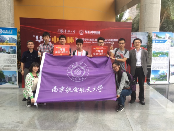 在4月21至23日,“华巨中国杯”第十四届华东地区高校结构设计邀请赛于厦门华侨大学举行。我校航空宇航学院党委副书记王中叶、土木工程系系主任吴瑾、专业老师唐敢、辅导员袁琪率队参赛。叶泽华、徐海斌、李湘组成的斜桁队和张耘、王宇涛、张芷英组成的拦阻索队分获第7、8名,均荣获二等奖。