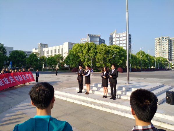 活动伊始,向同学们分发具有学院特色的活动留念贴纸,以传递具有航天学院的文化特色。接着全体同学排成形如航天学院标识的“V”字型,参加升国旗仪式。升旗仪式结束,学生代表朗诵航天员杨利伟先生写下的“天地九重”,让同学们从航天员的角度感受中国航天的迅猛发展,也让大家理解到到作为祖国航天接班人肩上的责任。活动最后,同学们在国旗下进行了激昂的宣誓,并决心要献身并发展祖国航天事业。