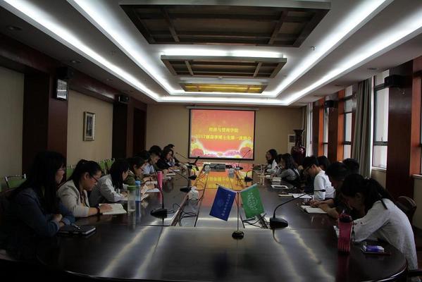4月21日下午14:00,经济与管理学院2017届春季博士第一次班会在经管楼604举行,副院长张卓、副书记许静、研究生辅导员袁颖,以及优秀博士毕业生吴菲参加了本次班会。班会由袁颖老师主持。