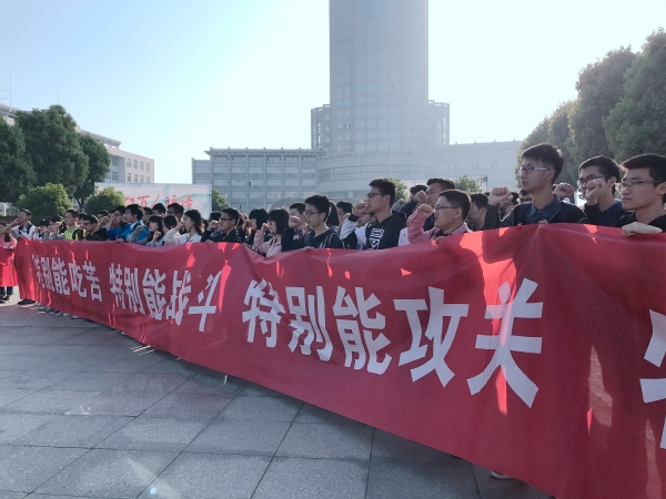 4月24日7:00,举行“中国航天日”主题升旗仪式,现场学生手拉“探索浩瀚宇宙,发展航天事业,建设航天强国”的横幅,在国旗下宣誓。