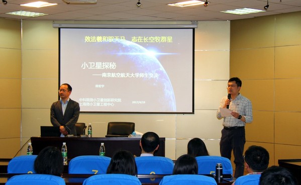 4月19日,陈宏宇教授作题为《微小卫星探秘》学术报告,我校康国华教授主持。