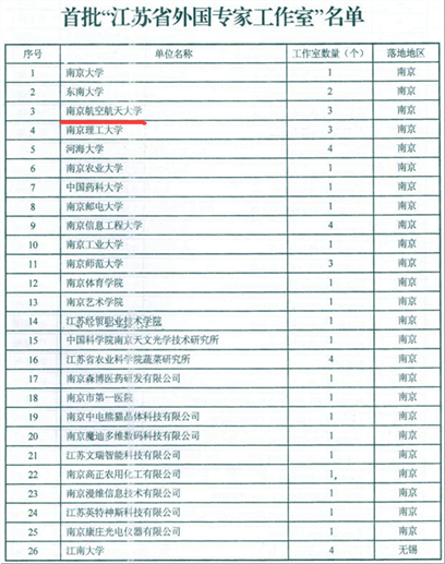 近日,省人力资源和社会保障厅发布了《关于在我省全面建立外国专家工作室制度的通知》,决定命名100家单位申报的外国专家工作室为首批“江苏省外国专家工作室”。我校申报的3个外国专家工作室成功获批。