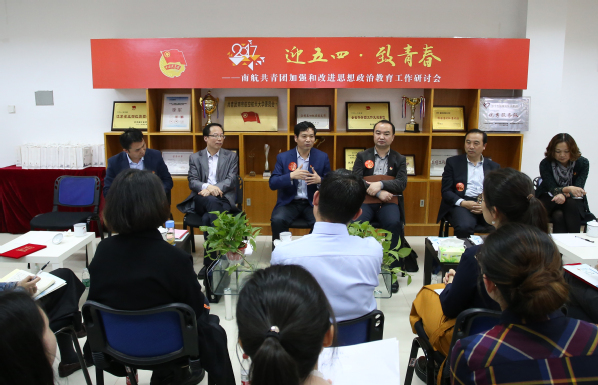 研讨会上,各院团委书记从共青团思政工作教育者的角度,提出了自己的建议和想法。计算机科学与技术学院团委书记阙愚从她三个与学生相处的故事提出共青团思政工作者在不断增强自己学习和运用能力的同时应把正确的故事面对面地讲给青年们听。经济与管理学院团委书记任慈建议通过线上线下的工作增进与学生的距离,将思政工作融入社会实践,与教学、创业创新相联系,通过打造“创青春”等优质平台来增加学生创新创业的机会。民航飞行学院团委书记傅成成总结到在共青团在工作方式上需要多思考多创新,积极利用校友资源去贴近青年,了解学生的需要。理学院团委书记王亚鹏提出思政工作需联系学院的实际,将第一课堂和第二课堂相结合。机电学院团委书记成杰提出关注青年的思想,了解学生需求。