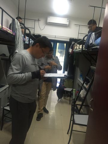 为此,在以往辅导员定期检查自己所带的各年级宿舍的基础上,5月3日上午9点,电子信息工程工程学院党委副书记王伟华带领全院辅导员对大一大二低年级学生宿舍进行了集中突击检查,探访学生宿舍安全卫生情况及逃课学生情况。对有安全隐患的宿舍提出整改措施,对发现懒床、逃课的同学进行了批评教育。