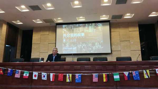 资深外交官沈永祥先生全程参与了2017年南航模联,他既在会场对学生的具体“外交活动”进行了指导,还在5月6日晚应邀向全体与会学生和南航的国际关系爱好者进行了讲座,讲座从沈永祥先生担任多个国家和地区驻外大使、参赞的经历出发,分享了他对外交官的责任与使命、外交工作的方法与技巧的理解。沈大使阅历丰富、语言朴实,把原本对普通青年学子有些神秘的“外交官”生涯娓娓道来,获得了广大同学的好评。