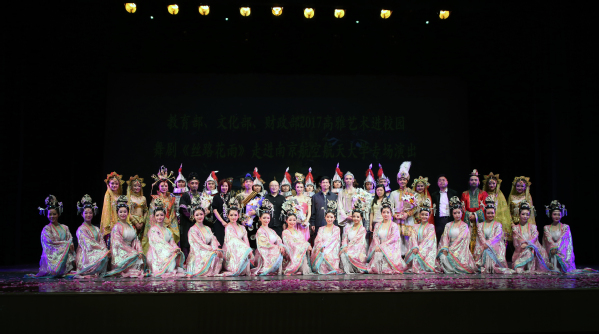5月9日晚,由教育部、文化部、财政部联合组织实施的“高雅艺术进校园”活动,甘肃省歌剧舞剧院经典舞剧《丝路花雨》在我校上演。校党委书记郑永安,江苏省教育厅体卫艺处处长张鲤鲤,副处长王红蕾观看了演出。