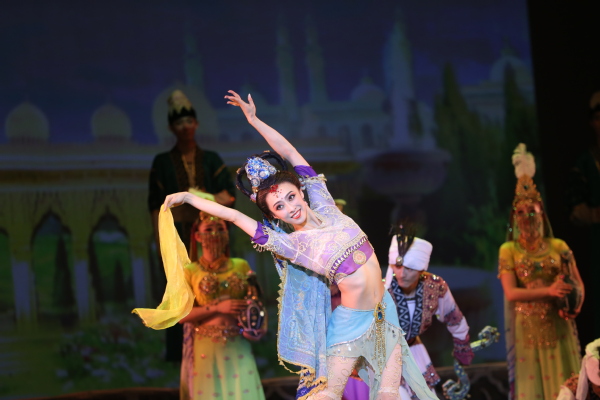 被誉为“二十世纪华人舞蹈经典作品”、“中国舞剧史上里程碑”、“中国舞剧之最”、“中国民族舞剧的典范”、“东方的《天鹅湖》”的中国经典舞剧《丝路花雨》,以别具一格的艺术风格,将瑰丽多彩的敦煌壁画搬上舞台,艺术形象地再现了敦煌文化的博大精深和古丝绸之路繁荣昌盛的辉煌景象。她所讲述的是古丝绸之路上发生的一个中外友谊、患难与共、父女亲情悲欢离合、大爱无疆的感人故事。精良的舞台制作、演员们的全情投入让现场的师生们沉浸在敦煌圣境中。