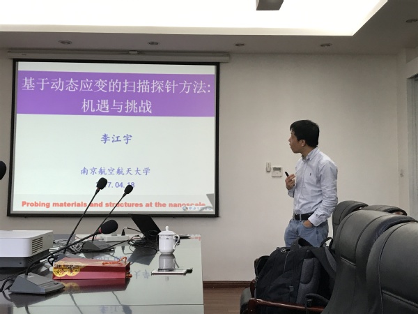 应我校机械结构力学及控制国家重点实验室高存法教授邀请,美国华盛顿大学机械工程学院李江宇教授及石家庄铁道大学赵晋津副教授于2017年4月17日至19日访问了我校,并于4月18日为我校师生分别做了题为“基于动态应变的扫描探针在信息、能源、与生物材料中的应用与挑战”及“钙钛矿太阳能电池材料制备及其力电光耦合性能研究”的学术报告。报告内容丰富、生动、精彩,分别介绍了扫描探针技术的最新发展和太阳能电池领域的进展等内容,对我校相关科研工作具有借鉴作用。朱孔军教授主持了此次报告会。