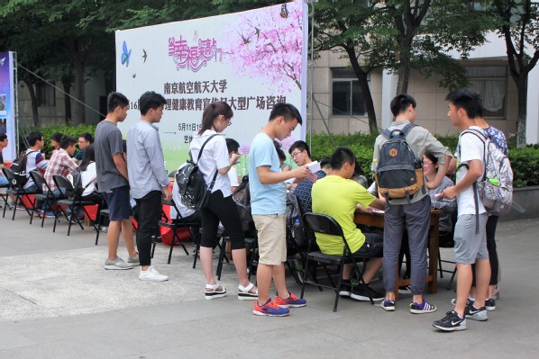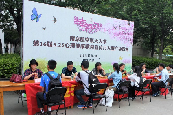 5月11日下午,由学生处、研究生院主办的第16届“5.25”心理健康教育宣传月大型之广场心理咨询活动在将军路校区艺体广场举行。来自东南大学、河海大学、南京师范大学、南京医科大学等五所高校的心理健康教育中心主任作为心理咨询专家为我校师生提供一对一的现场咨询服务。