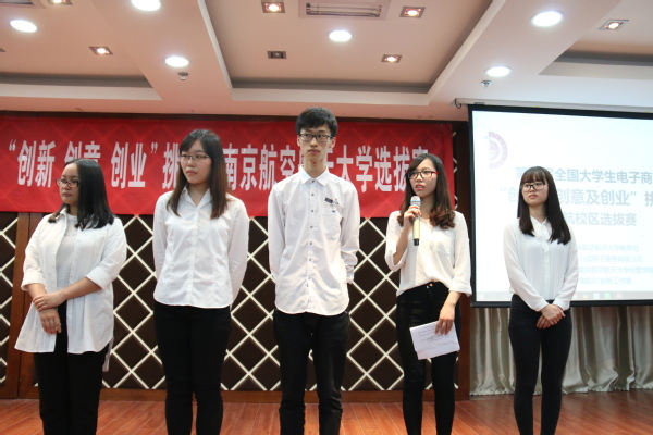 5月10日晚上,“妖精的口袋”杯第七届全国大学生电子商务“创新、创意及创业”挑战赛南京航空航天大学选拔赛在我校经管学院报告厅举行,本次大赛由南航教务处主办,经济与管理学院承办,行狐电商冠名,EC创新工作室协办。行狐电商副总洪涛、焦点科技产品经理刘伟、南航教务处副处长朱建军、经管学院院长助理米传民、经管学院管工系副主任张骥骧、南航工商管理系宋连莲以及学院团委书记任慈出席了比赛。