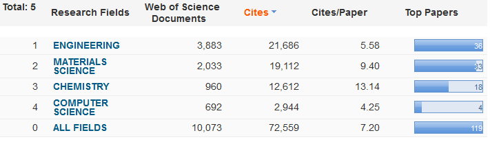 ESI工程领域,包含内容广泛,涉及到我校航空宇航、力学、动力工程与工程热物理、电气工程、控制科学与工程、电子科学与技术、机械工程、材料科学与工程、交通运输工程、信息与通讯工程、土木工程等。工程学在过去十年的论文数已达3883篇,引用次数达到21686次,篇均引用次数为5.58次,工程学学科的 Top论文共36篇,比上期增加3篇。
