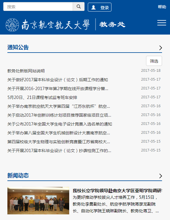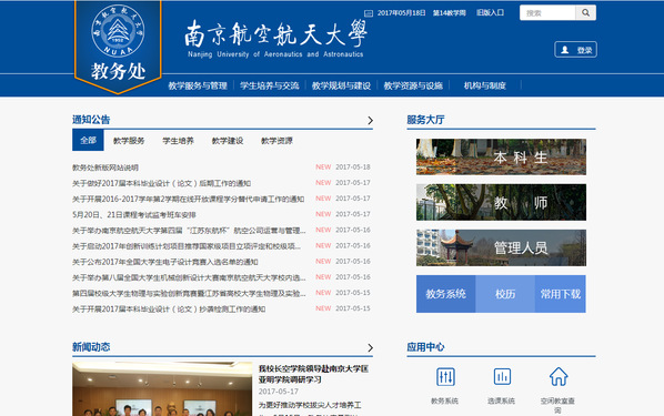 2017年5月18日,经过充分策划和准备,教务处新版主页正式上线,并同时发布手机版。新版主页紧密围绕学校人才培养工作,从网站的技术、视觉、内容等方面进行了更新与完善,旨在为用户带来更为便捷和舒适的使用体验。