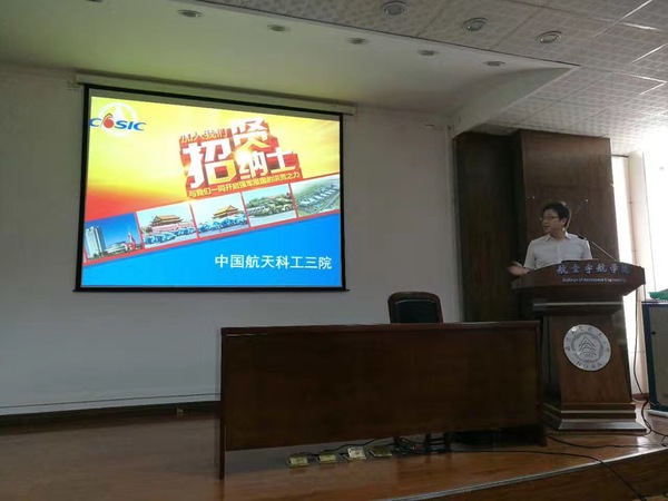 在会上,首先观看了航天三院的宣传片,介绍了航天三院的发展历史,让参与宣讲会的同学了解到中国航天科工集团第三研究院成立于1961年,是目前我国集预研、研制、生产、保障于一体,配套完备,门类齐全的飞航技术研究院,同时介绍了航天三院的发展历程以及多年来取得的优秀科研成果。