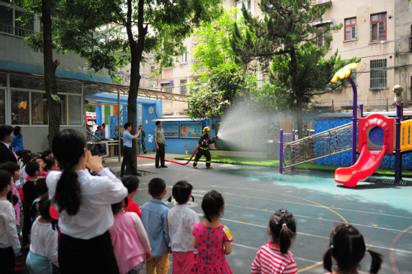 为进一步加强全园教职工和幼儿防范和应对突发事件的能力,我校西苑幼儿园联合南航大学保卫处消防科和秦淮区逸仙桥公安消防中队,于2017年5月25日上午,开展了一次“意料之外、预料之中”的消防疏散演练活动。