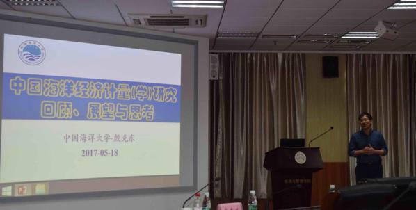 中国海洋大学殷克东教授作了题为“中国海洋经济计量(学)研究回顾、展望和思考”的报告。殷克东教授现任中国海洋大学经济学院副院长、数量经济学科及团队负责人。主要研究集中于数量经济分析与建模、货币金融体系与风险管理、海洋经济计量分析、海洋灾害损失精细化评估、系统优化仿真与检测预警等方向。在报告中,殷克东教授首先详细介绍了经济计量学的地位以及中国经济计量学的发展与研究历程,进而阐述了国际经济计量学的学科地位;接着从中国海洋经济发展形势分析、周期波动特征及问题与建议角度进行中国海洋经济发展形势分析与展望;最后探讨了海洋经济计量(学)的研究回顾、研究历程、研究思考与展望,介绍了中国海洋经济计量(学)研究进展,并根据中国海洋经济计量经济的发展趋势总结出中国海洋经济未来面临的机遇与挑战。