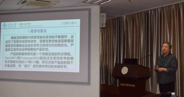 天津大学杜纲教授进行了题为“面向产品族设计的主从关联优化”的报告。杜纲教授现任天津大学管理与经济学部教授,管理科学与工程博士生导师。曾担任中国运筹学会常务理事、天津市运筹学会理事长及运筹与管理编委等。主要研究领域为管理系统分析与决策、系统工程与系统优化、工业工程、产品研发管理与供应链管理等。杜纲教授向大家介绍了产品族设计领域中广泛存在的多决策主体优化问题,以及解决该类问题的双层规划的基本理论,并详细分析了产品族设计领域中的主从问题来源与结构、主从关联优化的过程与模型。在此基础上以专题的形式详细介绍了产品族的相关应用:产品族模块配置与参数设计、产品族架构与供应链配置、考虑外包决策的产品族架构等。