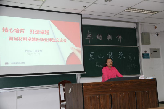 2017年5月25日晚,材料科学与技术学院开展了“卓越相伴·匠心传承”材料科学与工程“卓越工程师培养计划”首届毕业生师生交流会。到场来宾有材料科学与工程卓越计划负责人梁文萍教授、2013—2016各级卓越班班主任、带领首届卓越班实习的老师及全体卓越班学生与会,大会由16级卓越班常怡婷主持。