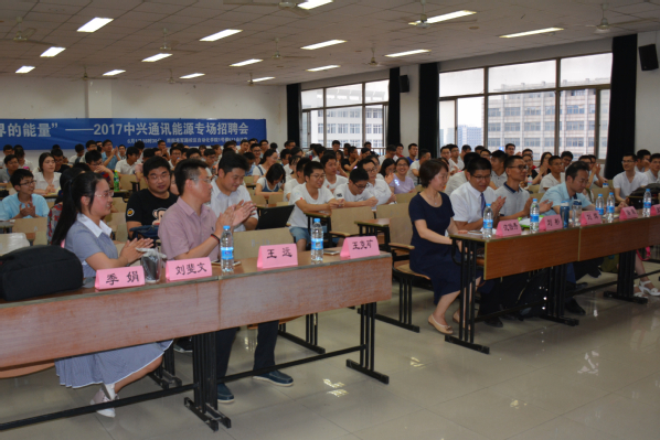 随后,中兴通讯能源研究院电源研发部长刘彬以“改变世界的能量”为主题为同学们介绍了能源行业的技术现状,能源互联网涉及的技术以及中兴通讯能源研究院招聘岗位的情况。来自中兴通讯的三位南航校友们则分别通过他们各自在中兴通讯工作的经历与同学们分享了职业生涯规划与发展的经验,并且和在座的同学们展开了有趣的互动,现场氛围热烈。有多位同学在互动问答环节中获得了中兴手机、蓝牙蘑菇音箱等奖品。宣讲会结束后,很多同学都向HR递上了自己的简历。
