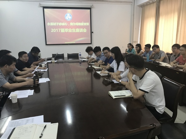 座谈开始之前,黄彬首先代表学院向毕业生们表示祝贺,接着他认真询问了现场每位同学的毕业去向,深入了解了本届毕业生的就业以及升学等状况。黄彬书记代表学院对同学们都有好的发展前途而表示祝贺和欣慰,他希望大家能够在座谈会上畅所欲言,为学院的教学和日常工作提出宝贵意见和建议,为学院师弟师妹能有更好的学习发展条件提供帮助,为学院的人才培养工作贡献力量。