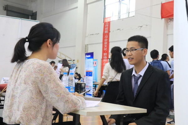 招聘会前,学校通过微信平台对学生提供线上就业指导,提醒学生做好四个“一”(一份简历、一件衬衫、一分钟自我介绍、一颗自信的心);招聘会现场,各学院党委副书记、辅导员纷纷到场,开展现场就业指导课,为学生了解企业、确定职业方向添油助力。