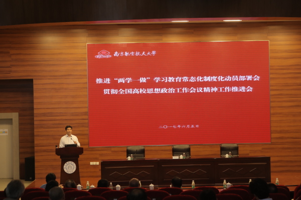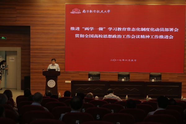6月5日,我校“两学一做”学习教育常态化制度化动员部署会和贯彻全国高校思想政治工作会议精神工作推进会在将军路校区召开。全体校领导、校长助理、全体中层干部、教工党支部书记、马克思主义学院全体教师、全体辅导员参加了会议。聂宏校长主持会议。