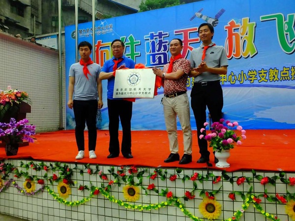 四川校友会戴亚隆会长发表了讲话,他希望同学们认真学习,鼓励同学们报考南航,将来报效祖国、造福家乡。试飞英雄李中华校友也来到了活动现场,并作了“我爱祖国的蓝天”主题演讲。四川校友会将募集的物资赠送给在校师生,为优秀学生颁发了奖状及奖学金,并指导学生们制作航模进行飞行表演。同学们为四川校友们表演了歌舞表示欢迎与感谢。