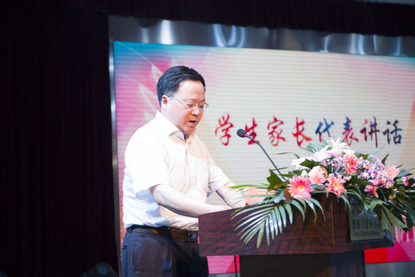 临近毕业,除了同窗之间、师生之间的相互祝福,家长们也有很多的叮咛和嘱托,毕业生俞佳炜的父亲代表全体家长向学校、学院表示感谢,为毕业生们送上真挚祝福的同时也提了三点嘱咐:饮水思源,不忘母校师恩;仰望星空,不忘继续学习;脚踏实地,不忘继续刻苦。父辈的谆谆教诲让在场的同学眼眶湿润。