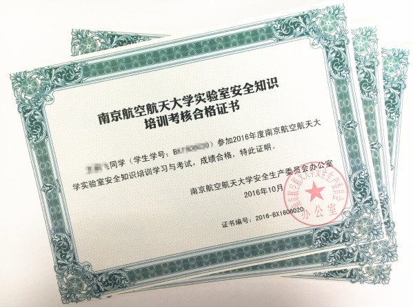 学校始终高度重视学生的安全教育培训工作,坚持多渠道开展安全宣传教育,大力推行实验室安全准入机制。每年通过新生安全培训、安全月、专项培训、实验室准入考核等多种方式对学生进行全方位安全教育。学校率先在工程训练中心、电子电工实验中心、材料科学与技术学院试行了安全准入制度,并建立了覆盖范围广、综合性强的安全考试题库。材料科学与技术学院结合学院特色,重点考核危险化学品安全使用知识,学生考试合格后方可进入实验室,学校向每一位通过考核的学生发放合格证书,并让学生签订实验室安全操作承诺书。材料科学与技术学院还开展了危险化学品泄漏应急演练等专项培训,切实提升学生的安全意识和安全技能。