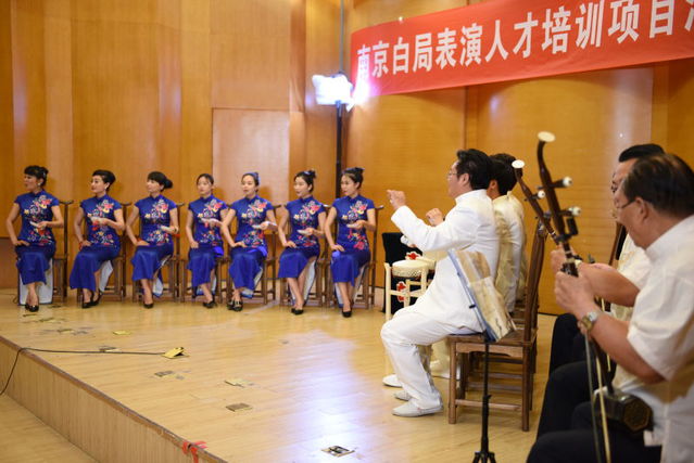 项目历时两个月,聘请了省级非遗传承人马敬华和周慧琴老师执教,在48课时的集中培训中,学员们学会了南京白局的代表性曲牌和三个经典剧目。在本次培训过程中,我校音乐学专业的研究生表现特别突出。他们虽不擅长南京方言,但踏实认真、勤学好问,克服了种种困难,借助扎实的歌唱技巧,最后以沉稳大方的表演,迤逦柔美的演唱折服了观众。汇报演出中有数个曲牌连缀的集体演唱,也有一两个曲牌的经典展示,还有代表性剧目的成功演绎。许多业内行家都为我院研究生的演唱惊叹不已。原南京白局剧团团长刘文玉女士激动地对项目负责人板俊荣教授说:“板老师,你们的培训为白局立了规矩,它就是打着板唱的曲艺,你们做到了。”原江苏省艺术研究院院长谢建平先生说:“你们的培训为传统音乐的传承模式摸索出了新路子,看来高校在传统音乐文化的传承上的确不能缺位。”