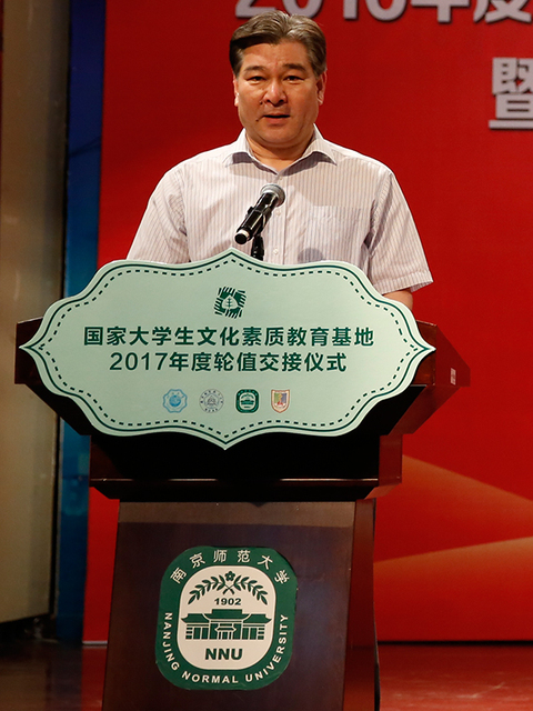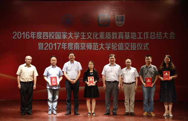 6月16日,河海大学、南京航空航天大学、南京师范大学、南京医科大学四校共建国家大学生文化素质教育基地轮值交接仪式在南师大随园校区举行。省教育厅副厅长苏春海,我校副校长黄志球,南京师范大学校长胡敏强、副校长傅康生,河海大学副校长鞠平,南京医科大学副校长王林出席交接仪式,各校相关职能部门负责人及学生代表参加本次活动。