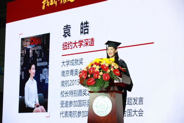 作为一个文科生,我很庆幸四年前选择了南航,因为它在我本来天马行空的人文主义浪漫当中调入了一抹脚踏实地的理智。是南航,教会我热情,让作为青奥会志愿者的我能够感染来自世界各地的贵宾;是南航,教会我担当,让我有机会站在国际奥委会的演讲台上助力北京冬奥会的申请;也是南航,教会我尝试,让我敢于在模拟联合国的国际舞台上绽放自我。毕业后,我将前往美国纽约大学攻读我的硕士学位。我会带着南航教会我的热情、担当和勇敢,继续我的梦想,并努力成为东西方文化的使者和桥梁!