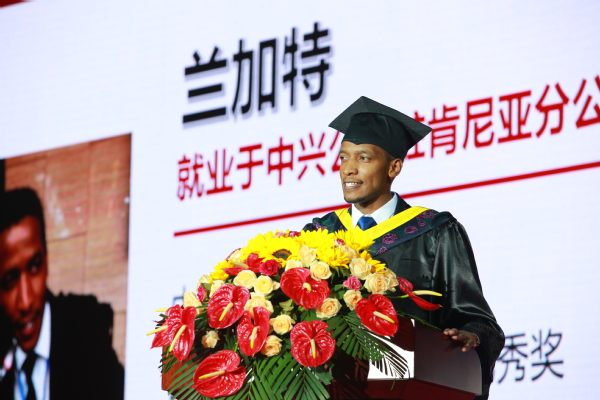 四年前,我有幸作为新生代表在开学典礼上发言。四年后,我又站到了毕业典礼的舞台上。在这四年里,我认识了很多中国朋友,能够说一口流利的普通话,并幸运地在中国的中兴公司找到了工作;同样是在这四年里,中国实施了“一带一路”的战略,在我的祖国肯尼亚修建了蒙内铁路,这是肯尼亚独立百年以来的首条铁路,一定会大大改善我们国家人民的生活。作为一名中国留学生,我感到无比的自豪。毕业后,我将作为中兴公司的一员,回到中兴驻肯尼亚分公司工作。我会带着在中国学习到的知识,去建设我的祖国。感谢中国,我爱中国,我爱南航!