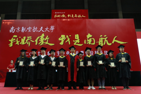 校党委书记郑永安为10名大学成就奖获奖者颁奖。随后,6名优秀毕业生代表发言,他们有执着于学习,痴迷于科创,保送中科院的学霸;有不忘反哺,投身公益,创立航模公益创业团队,致力于为贫困地区的孩子带去科学教育的爱心使者;有因对航空的热爱和执着,以“航空报国”的理想激励自己,选择在南航读研的航空追梦人;有即将奔赴祖国的国防单位,将为祖国的航空事业添砖加瓦的“就业之星”;还有认识很多中国朋友,能说一口流利的普通话,并幸运地在中国的公司找到工作的留学生。毕业生代表深情讲述了自己在南航的成长历程和对未来的无限憧憬,表达了对母校的感恩和眷恋。