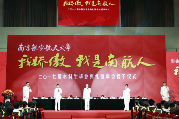 学位授予仪式结束后,2017届毕业生们面向导师集体宣誓:我将不忘师长教诲,铭记母校嘱托,传承“团结、俭朴、唯实、创新”的南航传统,带着”智周万物、道济天下”的胸怀与决心,坚守理想,矢志创造,用激情和才华续写南航辉煌!