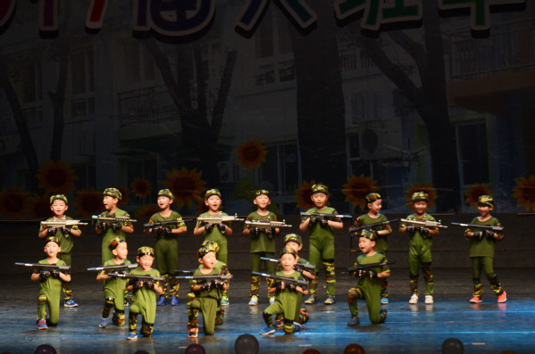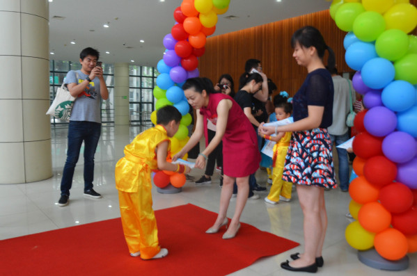 毕业典礼正式开始,李民惠园长向即将毕业的孩子们致以美好的祝愿和希望;大四班家长代表潘天隽的妈妈向幼儿园和辛勤工作的老师们表示衷心的感谢;大三班幼儿代表乔泓然也表达了四年以来对幼儿园的依依惜别之情和对老师的爱。在欢快的舞蹈《欢聚一堂》中,大班小朋友人生中的第一个毕业典礼拉开了序幕。舞台上孩子们尽情地唱着、跳着,尽情展现了他们最闪亮的一面:温婉柔美的《长大后我就成了你》、英姿飒爽的《小男孩》、充满童趣的《箱子里的梦》、威武潇洒的《中国龙》、清新优美的《太湖美》、魅力无限的打击乐《金蛇狂舞》,接着精彩的是大三班的全体家长、老师、孩子们同台表演《路要自己走》,精彩的节目赢来了家长们阵阵热烈的掌声和喝彩声。孩子们精心准备的节目赢得了家长的赞许和肯定,他们纷纷用相机定格下了一个个精彩的瞬间,留下孩子童年成长的印记。随后大班全体教师眼泛泪光、深情款款的诗歌朗诵《永远的守巢人》更是将活动推向高潮,让在场的每一个人为之动容。孩子们为心爱的老师献上花束来表达心中那份情。最后,毕业典礼在全体大班幼儿朗诵《毕业献词》中落下了帷幕,为孩子们的幼儿园生活划下了圆满的句号。