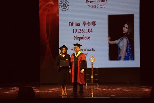 家长代表Ganesh Prasad Regmi(尼泊尔)向南航表达了感谢,感谢学校营造的积极氛围,感谢老师们把女儿教育的这么出色。他为今天毕业的所有孩子感到骄傲。