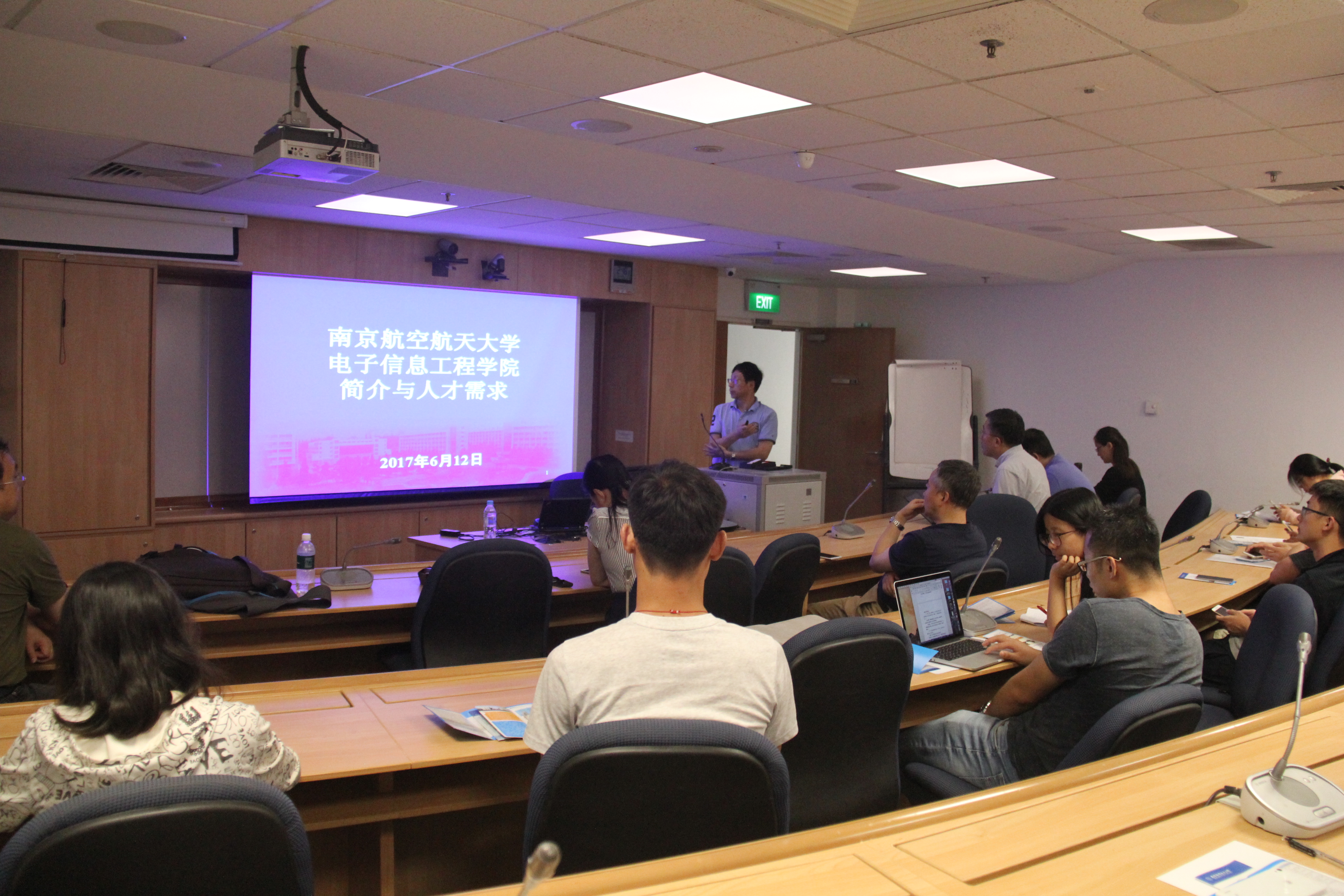 为加大海外宣传力度,引进海外优秀人才,6月11日至18日,电子信息工程学院常务副院长周建江教授率团赴新加坡、澳大利亚招聘海外优秀人才,先后在新加坡国立大学、新加坡南洋理工大学、墨尔本皇家理工大学以及悉尼科技大学举办多场招聘宣讲会,吸引了相关专业三十余名在读博士、博士后参加了招聘宣讲会。