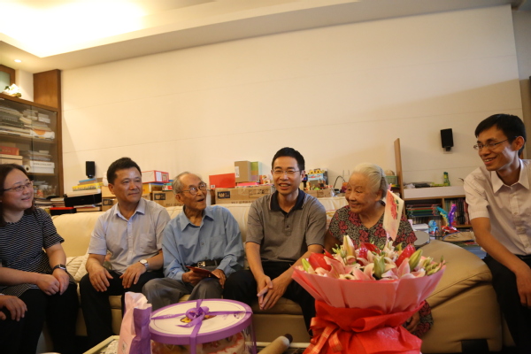 近期学校集中走访慰问一批离退休老党员、老干部。7月1日恰逢我校外国语学院退休教师、中共党员许光锐老先生的百岁寿辰。6月30日,在党的生日前夕,校纪委杭育新书记在校离退休处处长刘虎、副处长陆法明,外国语学院院长范祥涛、院党委书记刘健荣等部门及学院负责人的陪同下,专程前往许老家中进行看望和慰问。