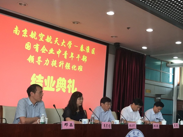 2017年7月4日上午,秦淮区国有企业中青年干部领导力提升强化班结业典礼在明故宫校区综合楼报告厅隆重举行。副校长施大宁教授,南京市秦淮区人民政府区长林涛,区委常委、组织部部长姜宸,副区长宗宁虎,南航经管院副院长邓晶、教育培训中心执行主任杜刚、教师代表苗建军教授和教育培训中心的老师们,以及秦淮区政府办、区委党校、区国资办的领导和全体学员出席结业典礼,会议由经济与管理学院党委书记焦宏图主持。