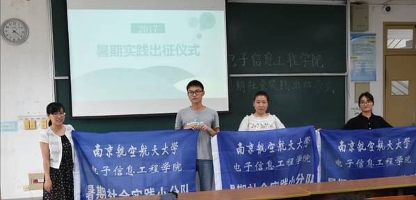2017年6月21日下午,电子信息工程学院2017年暑期实践活动项目团队出征仪式在6103如期举行。出席本次出征仪式的有团委书记张晓燕老师,常务副书记赵筱彤,副书记林琦昕、宫顺心以及25个暑期实践项目团队的众多团队代表。