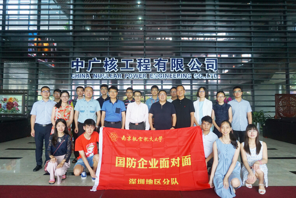 为促进校企合作、增加就业渠道、了解国防单位对毕业生素质能力要求,7月17日至18日由材料科学与技术学院带队,前往深圳中国广核集团参观走访。南航代表团由材料科学与技术学院党委副书记黄彬带队,代表团中人员有材料科学与技术学院材料系陈照峰主任、应用化学系梁彦瑜主任、核工程与核技术系贾文宝教授,团委书记吴科颖,辅导员关天茹、龙鑫曦明、杜海泉,以及来自各学院的7名学生代表。