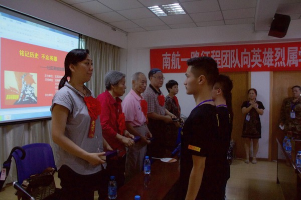 7月,团队成员协助玄武区民政局长城驿站拥军公益组织成功举办“铭记历史,不忘英雄”社区英雄故事会活动。参与故事会的除了有烈士遗属,还有玄武区民政局汪风华局长、常馨予秘书长,退伍老兵,社区老党员和学生代表,该活动还得到了金陵晚报《双拥周刊》等媒体的支持。团队成员们也一同聆听了当年老山前线的英雄故事和社区的平民英雄可歌可泣的感人事迹,烈士们的爱国精神值得每一个人学习。团队成员还为到场的烈士遗属和退伍老兵送上了南航定制纪念品。
