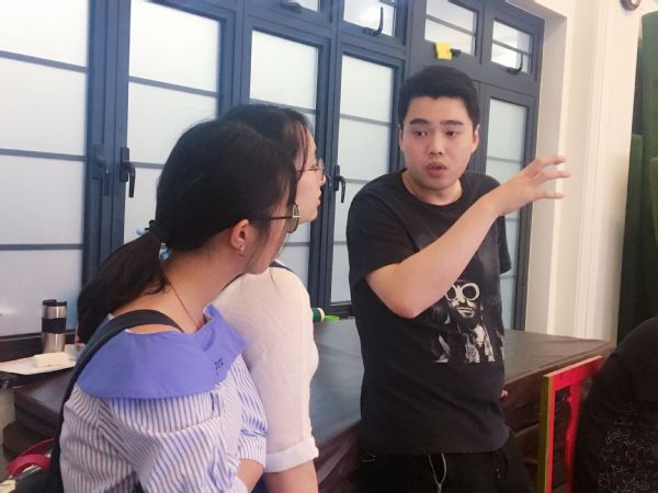 在沈小燕老师的推荐下,次日,“梦回苏昆”团队来到著名的上海昆剧团,受到负责人的热情招待,看见了辛苦训练的童子班和准备演出的专业演员们,进一步了解了昆曲幕后的故事。临走时昆剧团老师们表达了对我们的赞赏和支持,他们希望大学生更多的关注传统艺术,将经典戏曲传承下去。