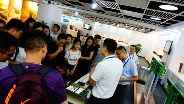 8月1日下午,在体验了汇川的美味食堂后,学院一行人公司车间生产线参观。每一层都是一个生产线,由汇川工程师们带领讲解参观。同学们听得非常仔细,不时提出疑问,讲解人员都一一耐心解答。同学们了解到很多自动化生产设备,构造及用途,拓宽了视野,把知识与实践相结合,从课堂走进车间,从书本走到生产。