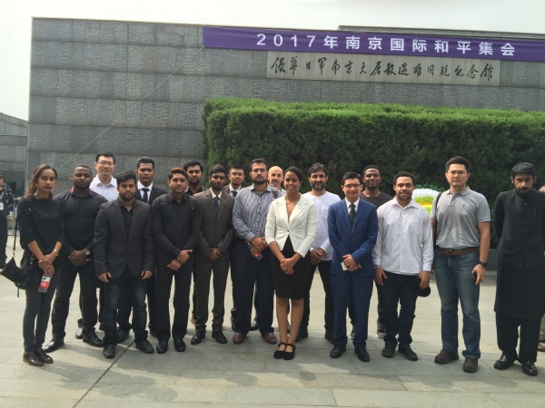 8月15日上午,我校20余名来自巴基斯坦、孟加拉国、约旦、印度、加纳等国家的留学生代表受邀参加了在侵华日军南京大屠杀遇难同胞纪念馆举行的2017南京国际和平集会。